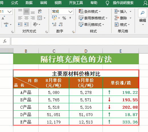 表格中隔行填充颜色既美化了表格,又缓解了视觉疲劳。